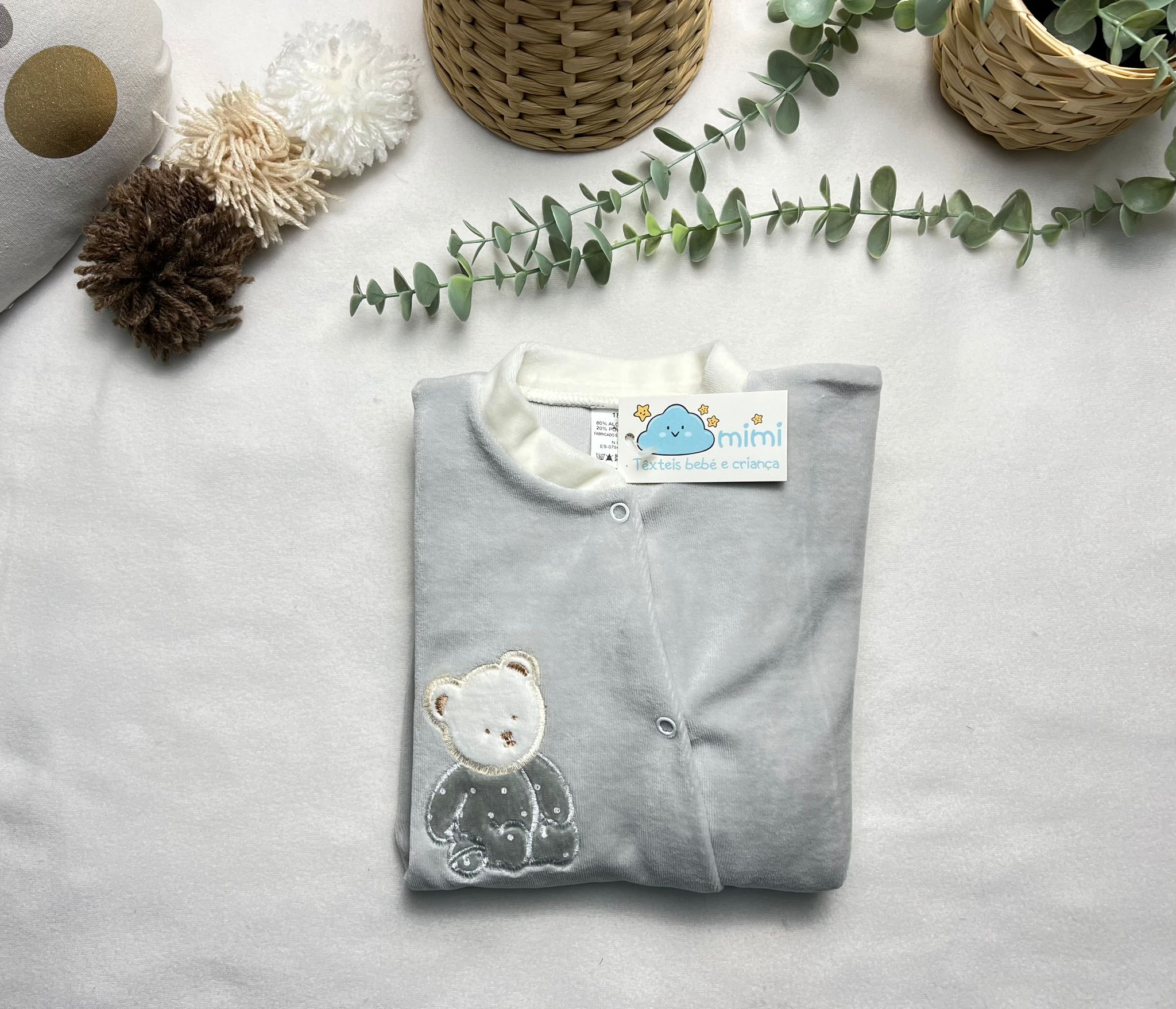 Babygrow/Pijaminha Ursinho Cinza