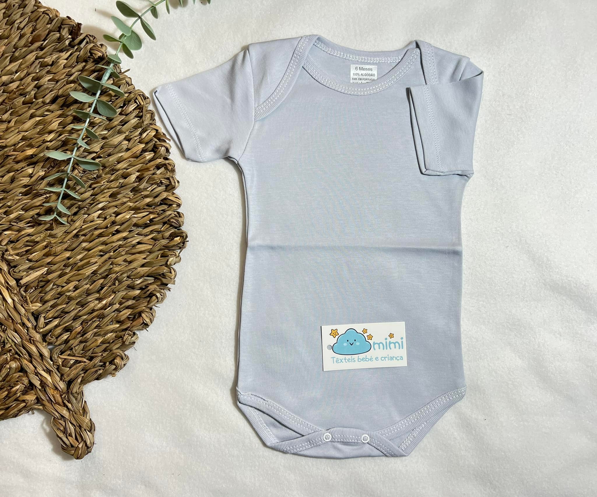 Body Manga Curta Simples Cinza